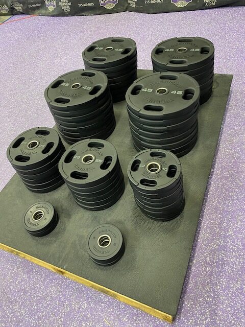 American Barbell Urethane Plate Lots – Brand New. These retail for as much as $6 lb elsewhere.