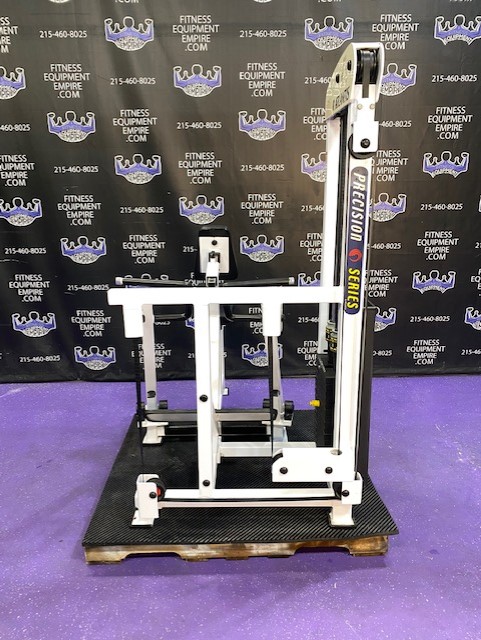 Hammer Strength plate loaded ISO lateral jammer press. This is essentially a standing chest press, (you can also add an adjustable bench and perform seated presses). These are often used by athletes, football players, etc. It’s a very powerful movement that will greatly increase your upper body strength, chest and shoulder development. These units are very common in NFL and NCAA training facilities. Unit is priced to sell.