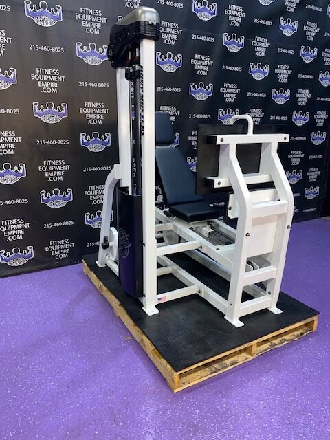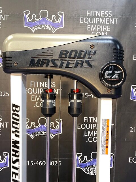 BRAND NEW Empire 8-stack jungle gym/cable crossover with 320 lb. weight stacks! 2.5” x 4.5” rugged, 11-gauge steel and oval tubing for that extra beefy appearance. Unit has high tension cables; multi chin grips that are fabricated with smooth rubber and finished with high-tech aluminum ends and collars. Stations interchange around the central hub for a possible 12-stack, L-shaped jungle gym. Options allow the substitution of 2 hi/low adjustable pulley columns replacing the tricep press down stations found on the Deluxe 8-stack version B (MDM-8SB).