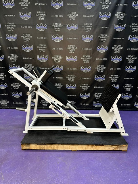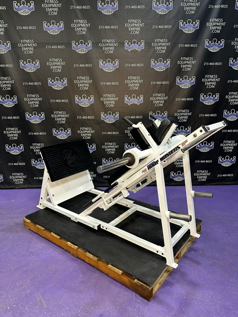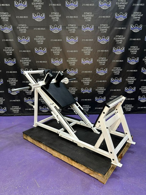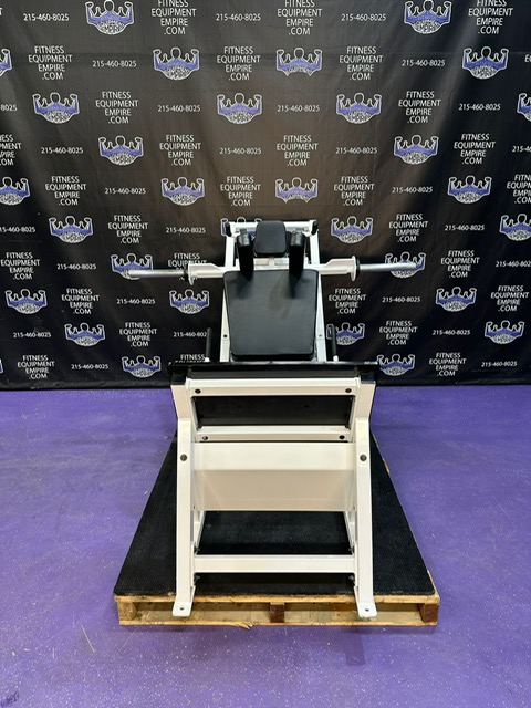 This is the most recent model hack squat by Bodymasters. The 40 degree angle makes the exercise much more friendly on the knees. You can perform squats facing either direction. Facing front will put more emphasis on the quads. Facing to the back will put more emphasis on the glutes, hams and hips. The hack squat is a very effective tool for building the legs. This machine is very RARE, highly sought after and hard to come byBodymasters LE 401 A Linear Hack Squat Machine.This unit is in stunningly beautiful condition.