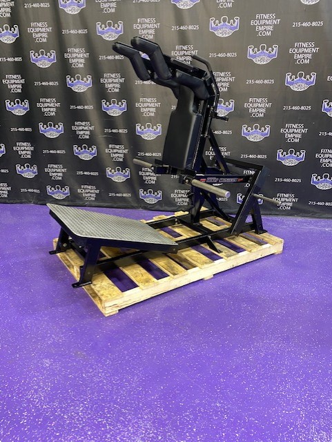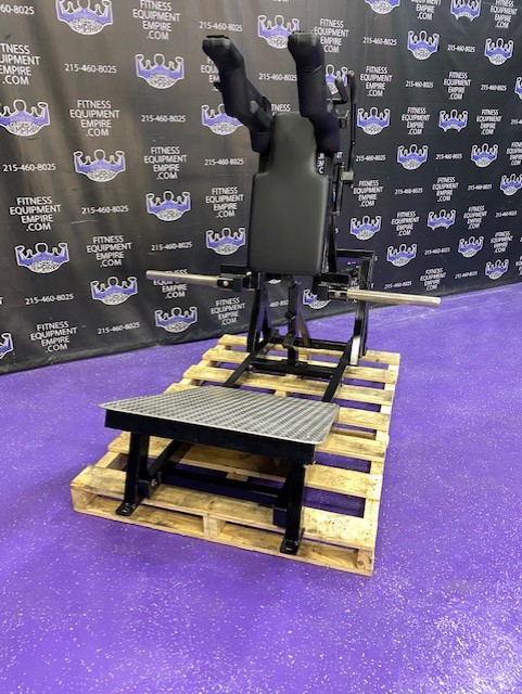 Original Bodymasters power squat LE 409. Face front or back, convenient hand release (no awkward foot release). Great angle that’s very easy on the knees and hips, huge platform for various foot positions. If you want a comfortable high end RARE machine to help build massive quads glutes and hams, then this it. I own the identical machine in my gym and absolutely love it.