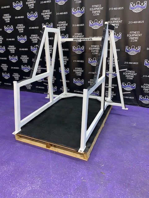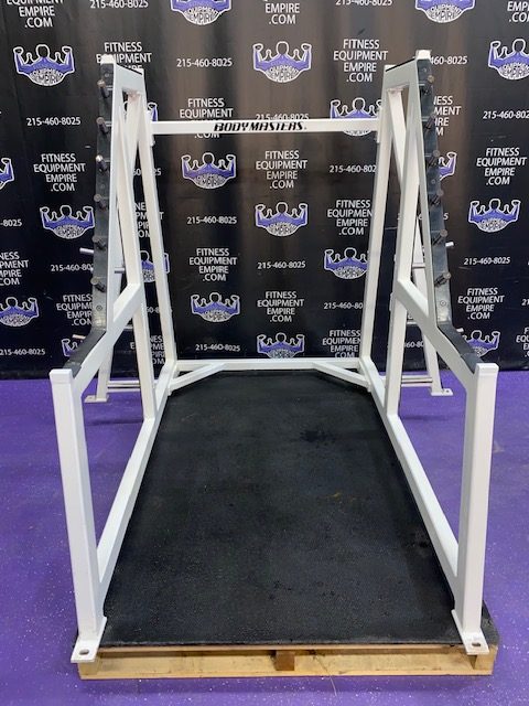 Bodymasters squat rack. This is a full commercial grade rack by one of the industry leaders in commercial fitness equipment companies. This rack is built like a tank and will take a ton of abuse. This rack will fully disassemble, making transport and setup anywhere a breeze. Rack is in excellent condition, was used as a floor model and hasn’t seen commercial use.