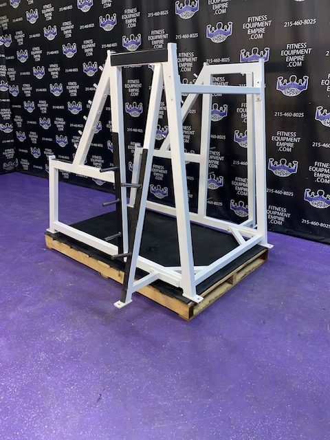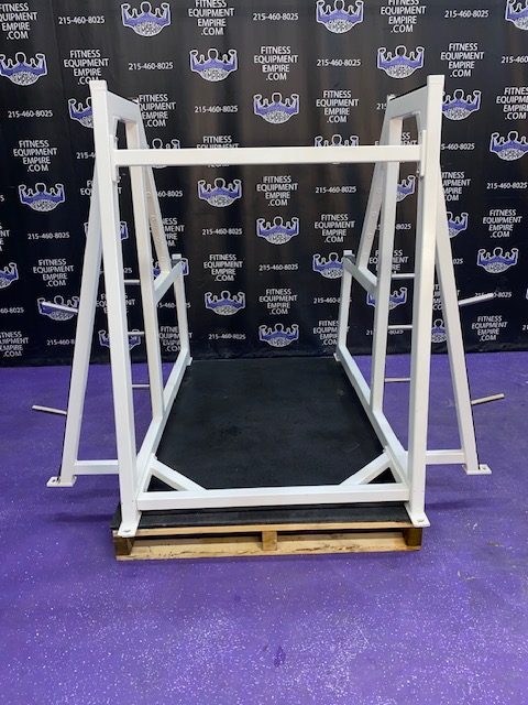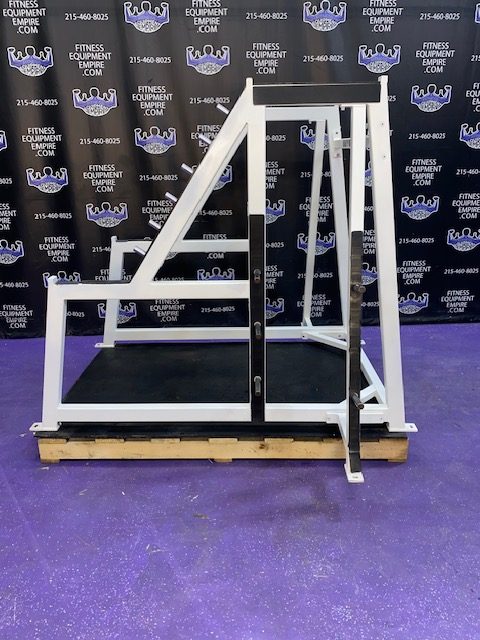 FreeMotion squat machine with 400 lb. stack. This unit in excellent condition. This is the machine that can be found in the mecca of bodybuilding – Golds Gym, Venice Beach. The likes of Dexter Jackson, Sean Rhoden and TONS of other IFBB Pro bodybuilders can be found training on this machine, often by Charles Glass. The angles of the platform on this machine are crazy! You can also squat facing either direction. This machine does not and will not bottom out, and is GREAT on the joints, which is why Dexter uses it. He’s 46 and his legs are better than ever! This is a PHENOMENAL machine!!