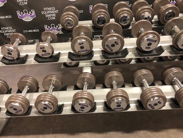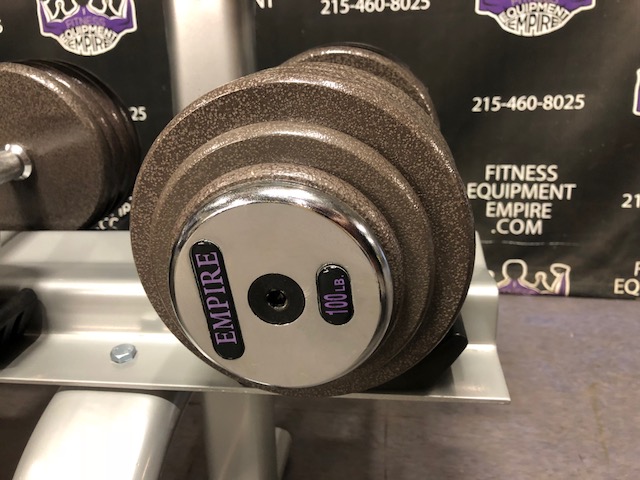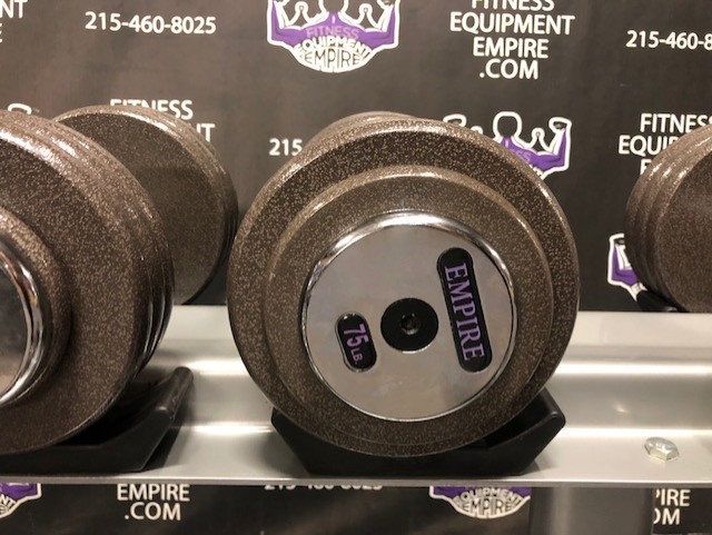 BRAND NEW EMPIRE iron prostyle dumbbells. These are high-end, commercial grade, gym quality, professional dumbbells. These dumbbells have nice, thick, 30 mm knurled handles, with a beautiful powder coated non-chip finish, chrome comfort end caps. dumbbell sets are precise, accurate and assembled in the USA. You will not find new prostyle dumbbells priced this low, and especially of this quality and craftsmanship. These are designed to last a lifetime!