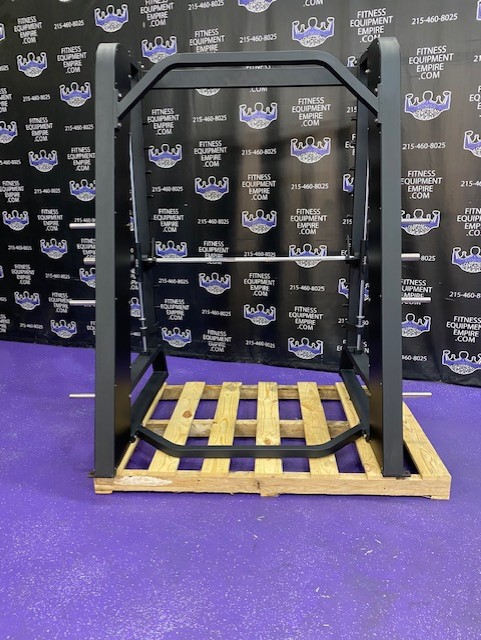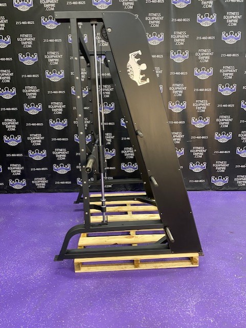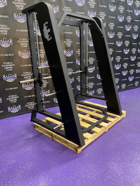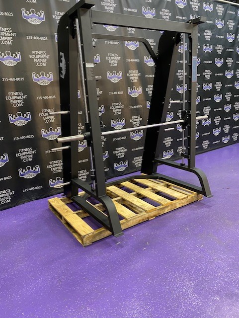 BRAND NEW Empire linear counter balanced smith machine. These are simply beautiful, extremely smooth and built like tanks (550 lbs.)! The Empire smith machine bar rides on a 90 degree, vertical up and down plane of motion. There is no silly awkward angle.