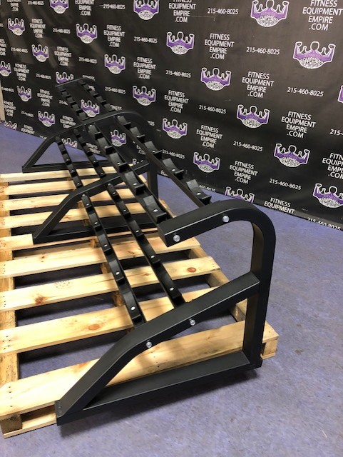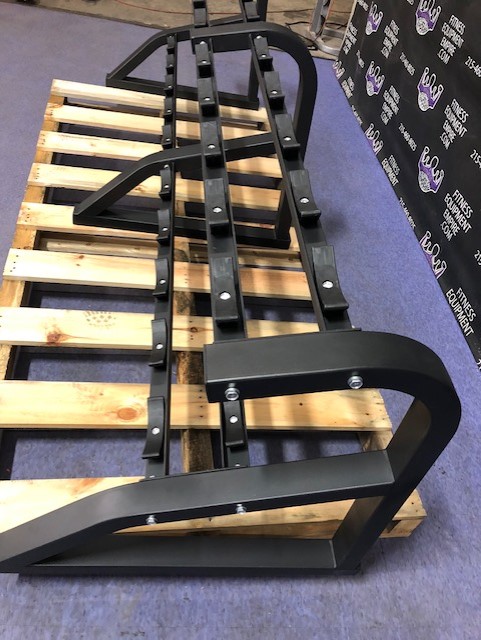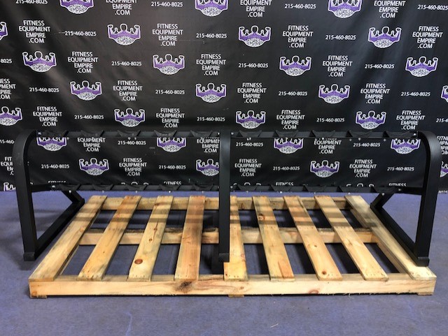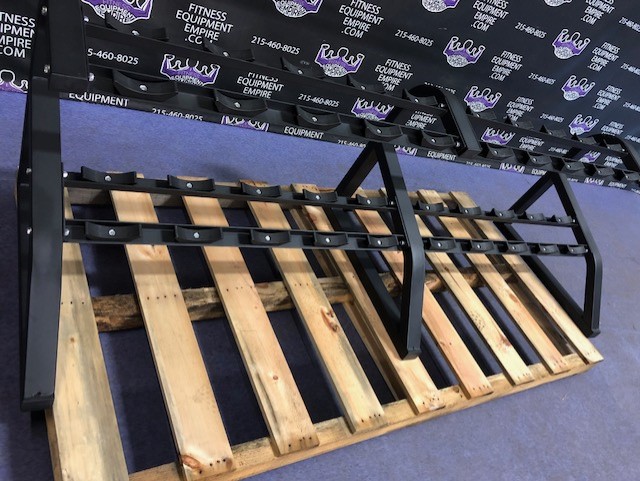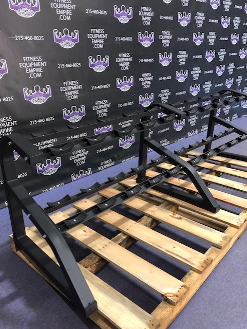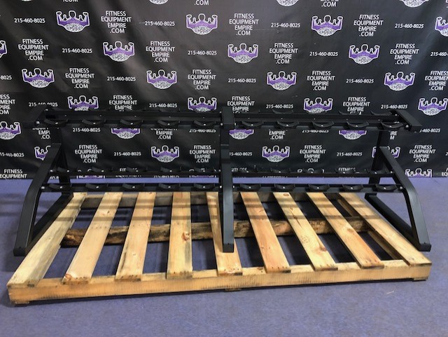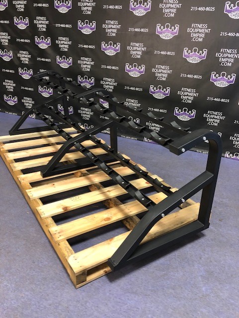 BRAND NEW Empire Prostyle dumbbell racks with saddles. Beautiful powder coat finish and modern tubing. Not recommended for dumbbell over 100 lbs. These racks will fully disassemble, making shipping economical and setup anywhere a breeze.
