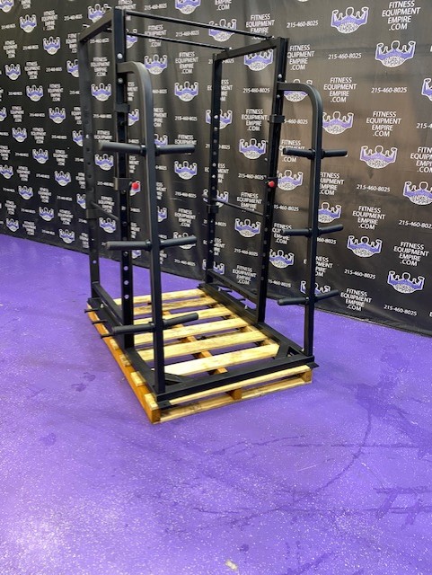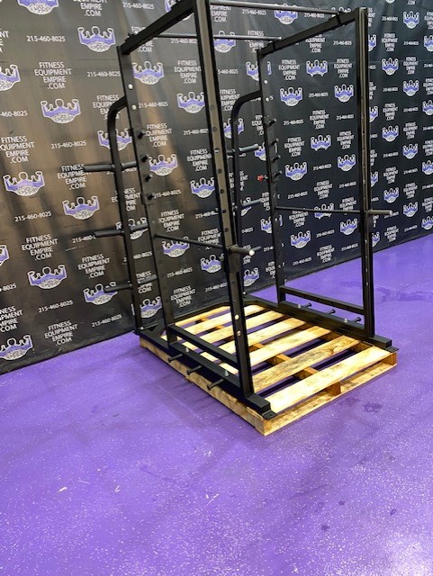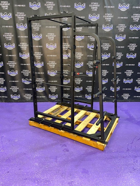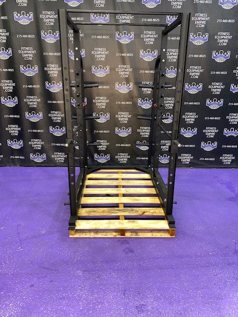 Loaded full commercial grade power rack squat in stellar condition. Pullup bars, plate storage, band pegs, multiple j hook attachment & safeties. You can perform every exercise under the sun with this rack, in style.