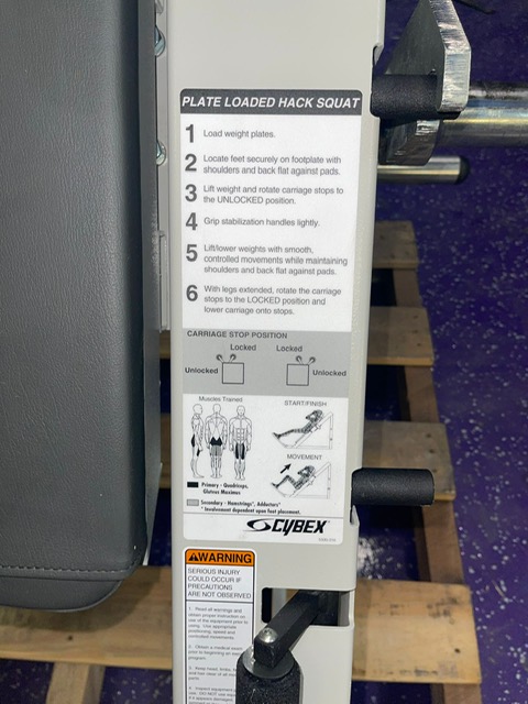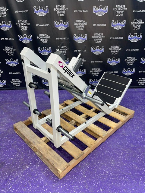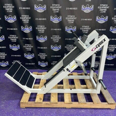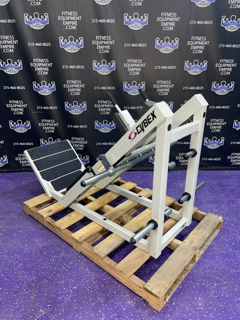 Cybex 45-degree linear hack squat machine. This is an all-time classic, popular and well sought-after machine. This unit will blast the quads.