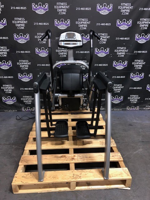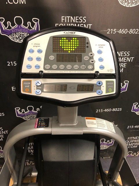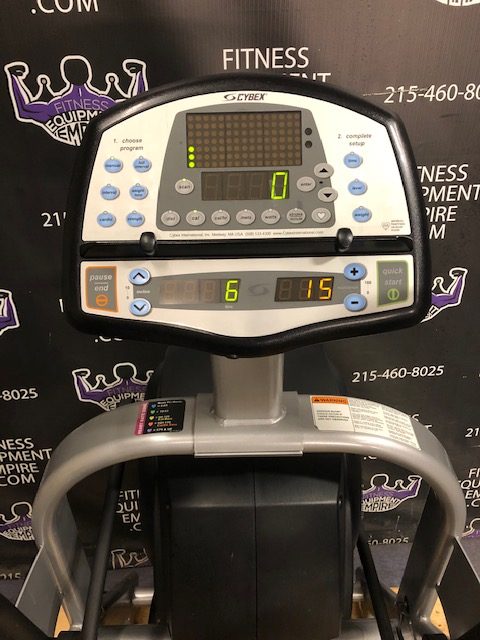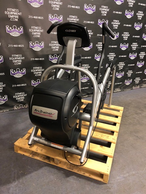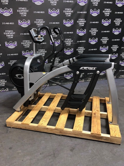 Cybex 610A Arc Trainer. The Cybex 610A Arc Trainer combines elements of a climber, cross-trainer and cross-country skier, and like other Cybex arc trainers, it’s designed to give the least amount of stress on joints, while maintaining the highest level of performance. This machine offers all of the award winning features of the 600A Arc Trainer, but adds arm handles conveniently designed with grips that enable you to put emphasis on either upper or lower body muscles. This is the patented Same Side Forward (SSF) configuration, which allows you to maintain correct posture at any degree of ramp incline. The high intensity user can lean forward without placing excess stress on the back. The reciprocal movement of the footplates allows for an accurate foot path in a natural (arc) motion, creating a relaxed feel. Four-bar linkage input arms keep the footplates at a constant angle with the floor – thereby reducing stress on the foot and ankle. Also similar to the 600A, the Total Body 610A offers extreme durability and can take whatever you dish out. The 610A’s movable arms create a curvilinear path that minimizes shoulder/elbow deviation and stress. The sturdy 610A also comes with front-mounted wheels to make the Arc Trainer more portable to preferred positions in your home and gym. These units are in excellent condition, working order and are being sold as is.