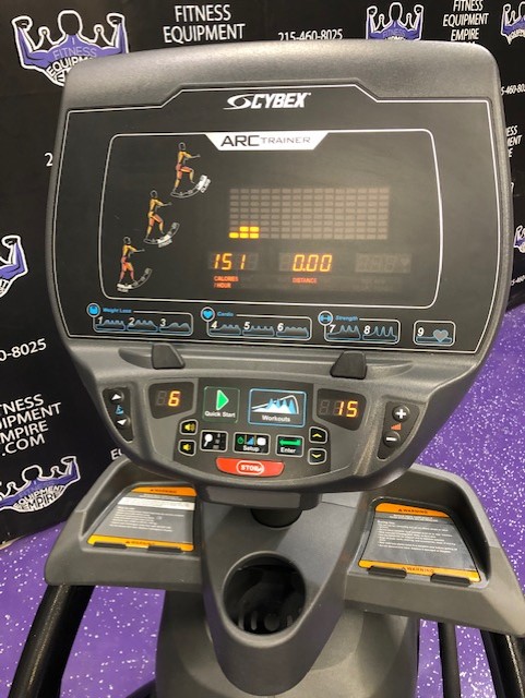 The Cybex 630a Arc Trainer is a professional high-end cross trainer created for the demanding customer. The Cybex arc trainer brings innovation to the art of fitness training. This one machine might be the most demanded cardio machine inside a popular health club. Adjustable incline provides variability in the pattern of motion. Low inclines provide a gliding action with modest hip and knee motion, while higher inclines provide comparable increases in hip and knee motion. Superior biomechanics allow for high intensity training that places high loads on the muscles with less stress on joints. Resistance range from 0 to 900 watts accommodates a wide variety of users, for those seeking a very low work rate to dedicated athletes demanding an extreme workout. This unit sells preowned elsewhere for as much as $4,400. A comparable new arc trainer costs as much as $8,000.