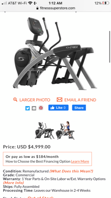 This is a super clean, current model of Cybex 750A Arc Trainer. The Cybex 750A Arc Trainer utilizes reverse arc motion technology, that engages the largest muscles groups in the legs and trunk to effectively burn the most calories, in the least amount of time. It provides a smooth, patented arc pattern that places the user’s toe behind the knee while pedaling, thus reducing stress on the joints allowing for a more comfortable workout experience. This unit has been cleaned, serviced, is in excellent condition and perfect working order. This unit sells elsewhere preowned for as much as $4,600.