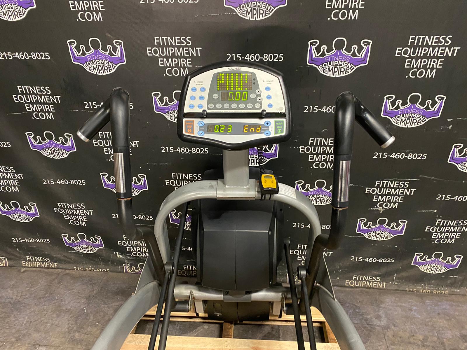 The Cybex 630a Arc Trainer is a professional high-end cross trainer created for the demanding customer. The Cybex arc trainer brings innovation to the art of fitness training. This one machine might be the most demanded cardio machine inside a popular health club. Adjustable incline provides variability in the pattern of motion. Low inclines provide a gliding action with modest hip and knee motion, while higher inclines provide comparable increases in hip and knee motion. Superior biomechanics allow for high intensity training that places high loads on the muscles with less stress on joints. Resistance range from 0 to 900 watts accommodates a wide variety of users, for those seeking a very low work rate to dedicated athletes demanding an extreme workout. This unit sells preowned elsewhere for as much as $4,400. A comparable new arc trainer costs as much as $8,000.