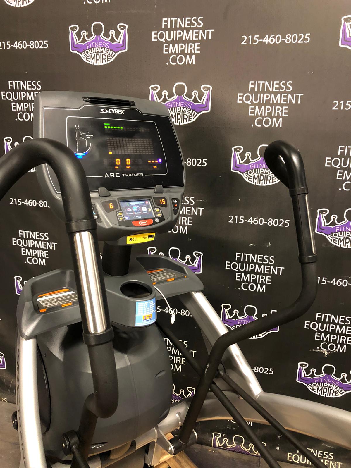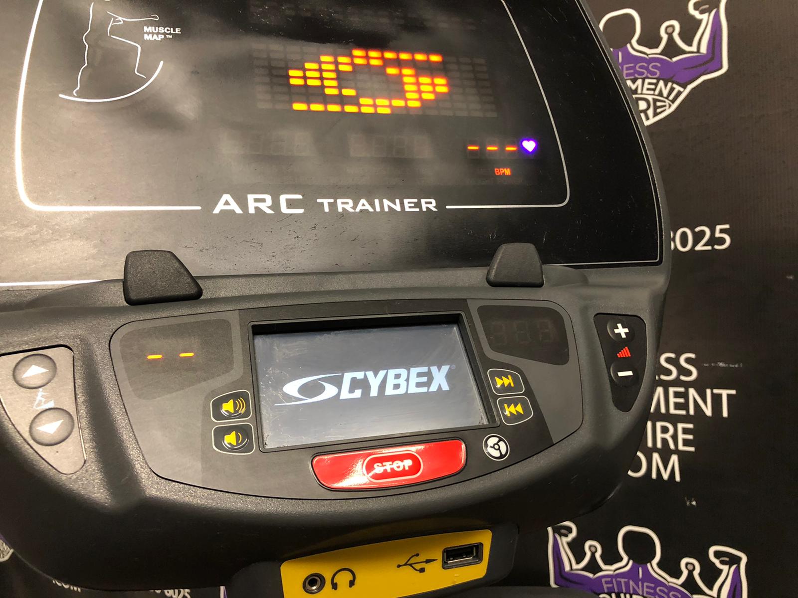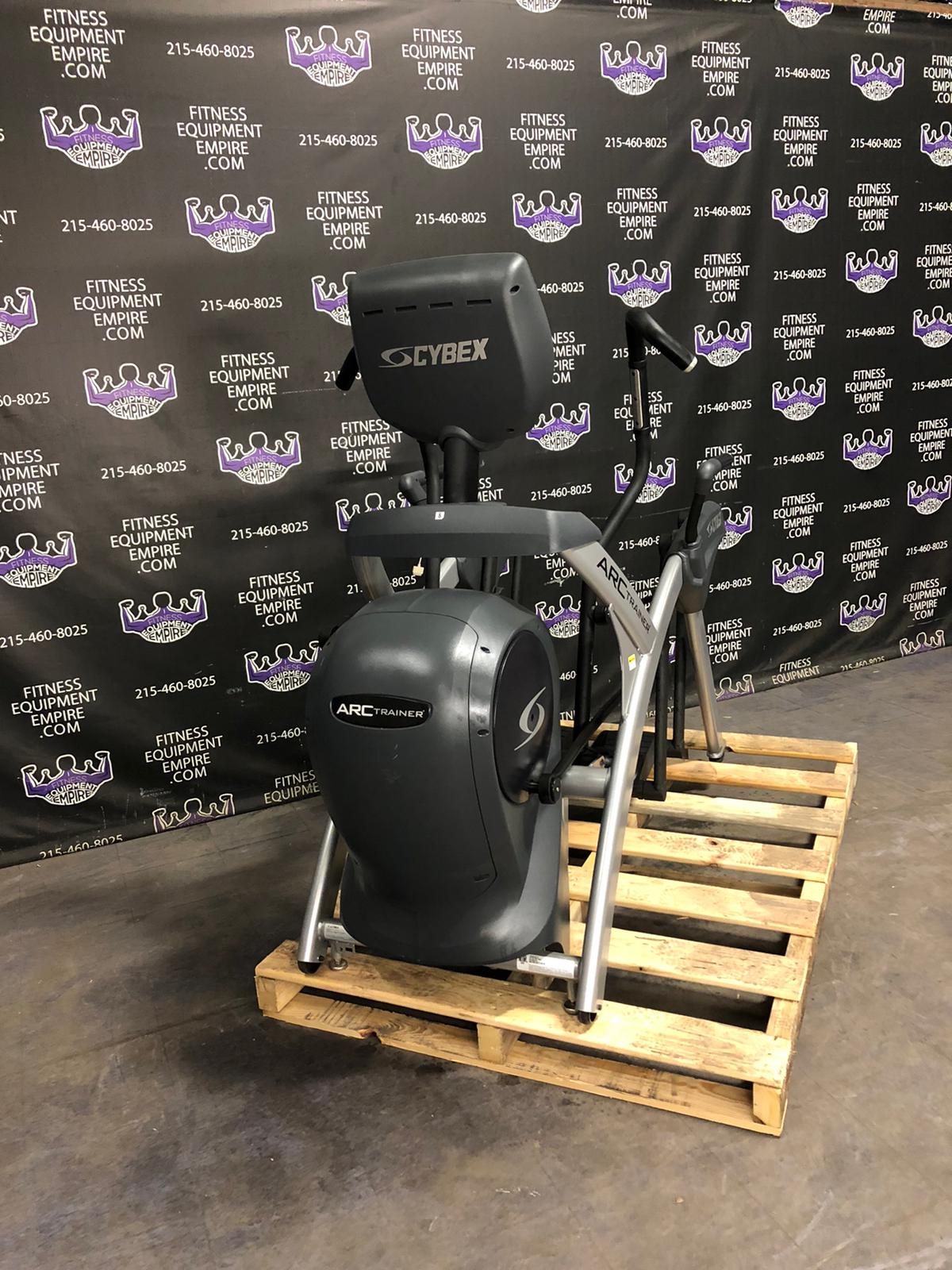 Cybex 610A Arc Trainer. The Cybex 610A Arc Trainer combines elements of a climber, cross-trainer and cross-country skier, and like other Cybex arc trainers, it’s designed to give the least amount of stress on joints, while maintaining the highest level of performance. This machine offers all of the award winning features of the 600A Arc Trainer, but adds arm handles conveniently designed with grips that enable you to put emphasis on either upper or lower body muscles. This is the patented Same Side Forward (SSF) configuration, which allows you to maintain correct posture at any degree of ramp incline. The high intensity user can lean forward without placing excess stress on the back. The reciprocal movement of the footplates allows for an accurate foot path in a natural (arc) motion, creating a relaxed feel. Four-bar linkage input arms keep the footplates at a constant angle with the floor – thereby reducing stress on the foot and ankle. Also similar to the 600A, the Total Body 610A offers extreme durability and can take whatever you dish out. The 610A’s movable arms create a curvilinear path that minimizes shoulder/elbow deviation and stress. The sturdy 610A also comes with front-mounted wheels to make the Arc Trainer more portable to preferred positions in your home and gym. These units are in excellent condition, working order and are being sold as is.