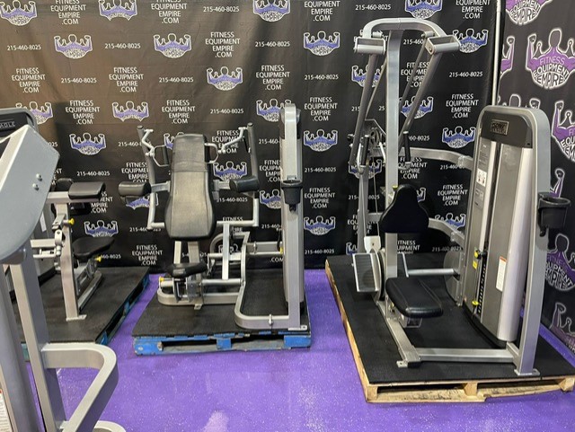 Nautilus Star Trac Inspiration and Impact 12 Unit Total Body Strength Circuit & Gym Package – Silver frames with black upholstery. These are BEAUTIFUL machines and are the latest and current models available by Nautilus. There is a machine for each and every muscle group. These machines were purchased new by a small personal training center and have had little use. All units have the latest Lock & Load weight stack Technology. This circuit is priced incredibly well, far below retail, and is a phenomenal buy for any home, studio or commercial facility.
