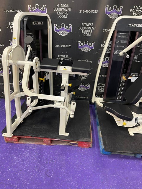 Cybex 610A Arc Trainer. The Cybex 610A Arc Trainer combines elements of a climber, cross-trainer and cross-country skier, and like other Cybex arc trainers, it’s designed to give the least amount of stress on joints, while maintaining the highest level of performance. This machine offers all of the award winning features of the 600A Arc Trainer, but adds arm handles conveniently designed with grips that enable you to put emphasis on either upper or lower body muscles. This is the patented Same Side Forward (SSF) configuration, which allows you to maintain correct posture at any degree of ramp incline. The high intensity user can lean forward without placing excess stress on the back. The reciprocal movement of the footplates allows for an accurate foot path in a natural (arc) motion, creating a relaxed feel. Four-bar linkage input arms keep the footplates at a constant angle with the floor – thereby reducing stress on the foot and ankle. Also similar to the 600A, the Total Body 610A offers extreme durability and can take whatever you dish out. The 610A’s movable arms create a curvilinear path that minimizes shoulder/elbow deviation and stress. The sturdy 610A also comes with front-mounted wheels to make the Arc Trainer more portable to preferred positions in your home and gym. These units are in excellent condition, working order and are being sold as is.