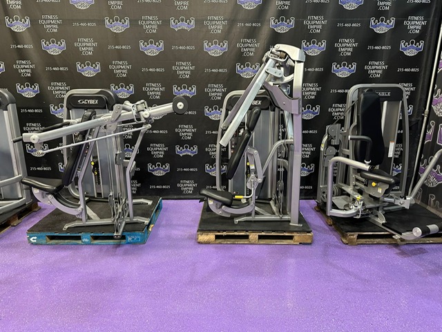 Cybex 610A Arc Trainer. The Cybex 610A Arc Trainer combines elements of a climber, cross-trainer and cross-country skier, and like other Cybex arc trainers, it’s designed to give the least amount of stress on joints, while maintaining the highest level of performance. This machine offers all of the award winning features of the 600A Arc Trainer, but adds arm handles conveniently designed with grips that enable you to put emphasis on either upper or lower body muscles. This is the patented Same Side Forward (SSF) configuration, which allows you to maintain correct posture at any degree of ramp incline. The high intensity user can lean forward without placing excess stress on the back. The reciprocal movement of the footplates allows for an accurate foot path in a natural (arc) motion, creating a relaxed feel. Four-bar linkage input arms keep the footplates at a constant angle with the floor – thereby reducing stress on the foot and ankle. Also similar to the 600A, the Total Body 610A offers extreme durability and can take whatever you dish out. The 610A’s movable arms create a curvilinear path that minimizes shoulder/elbow deviation and stress. The sturdy 610A also comes with front-mounted wheels to make the Arc Trainer more portable to preferred positions in your home and gym. These units are in excellent condition, working order and are being sold as is.