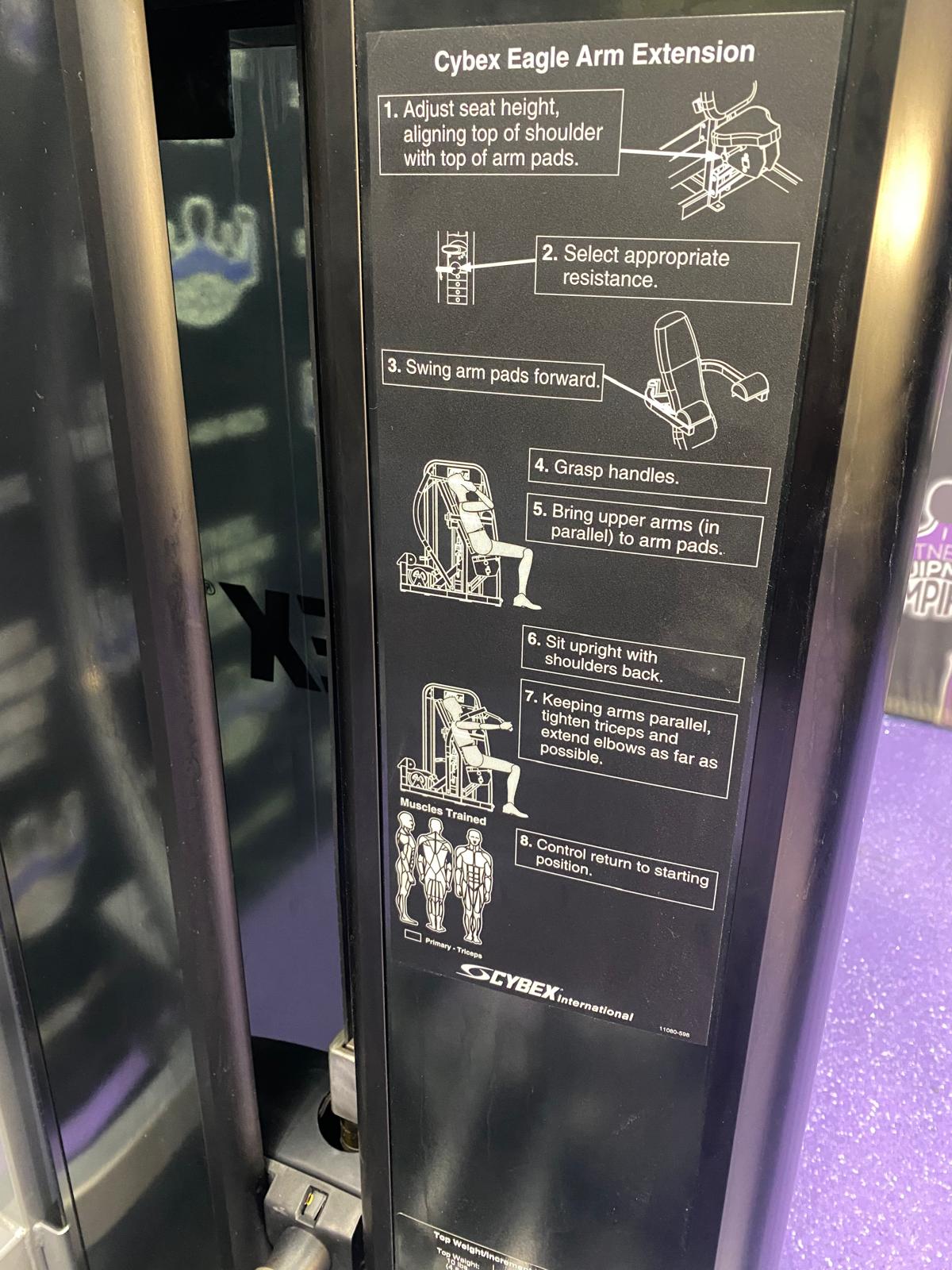 Full commercial grade, late model Cybex Eagle tricep extension in clean condition. This machine will help get your arms where you want them to be. The unit is excellent, smooth, well designed and makes cheating the exercise nearly impossible. This is very important for arm growth and all of the tension is placed on the targeted muscles Read the Owner’s Manual carefully before assembling, servicing, or using the equipment. Owner must comply with all safety guidelines in this manual.