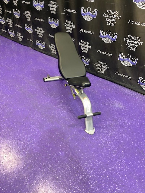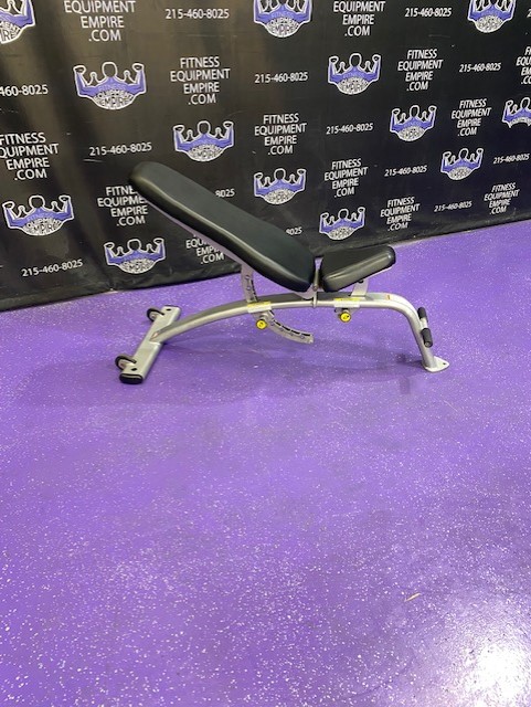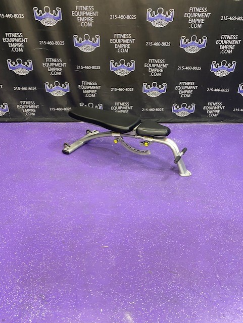 Cybex adjustable decline abdominal bench. This is the current and latest model bench offered by Life Fitness. This bench is great for crunches, but also for pressing movements. Can be used free standing, in the smith machine or squat rack, with a barbell or dumbbells. Bench retails new for $1,400.