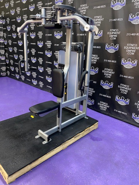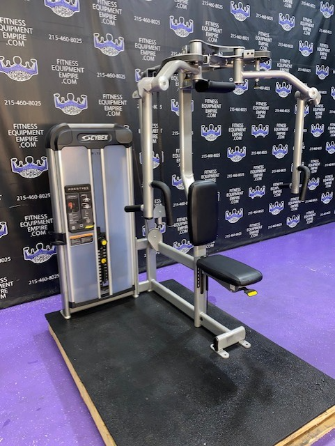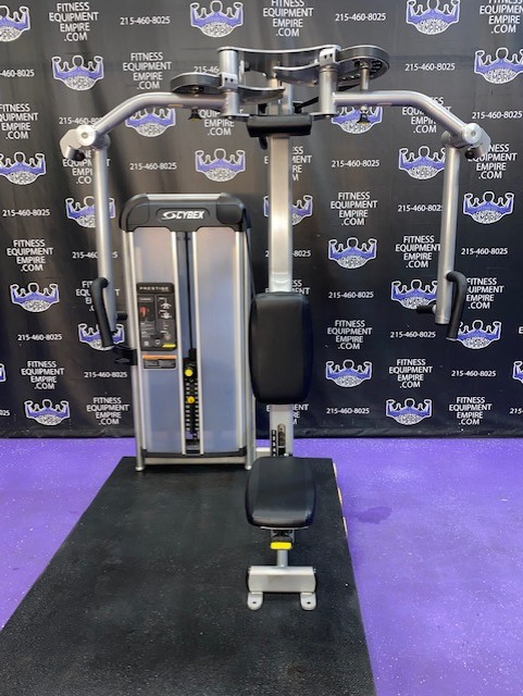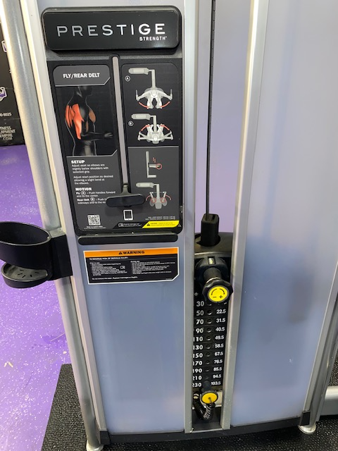 Cybex Prestige pec fly rear delt combo. Unit is a beautiful platinum color and is in excellent condition. This machine is a total chest and shoulder machine, that is a staple in every single gym and should be used in every chest and shoulder routine.Cybex Prestige Platinum Pec Fly