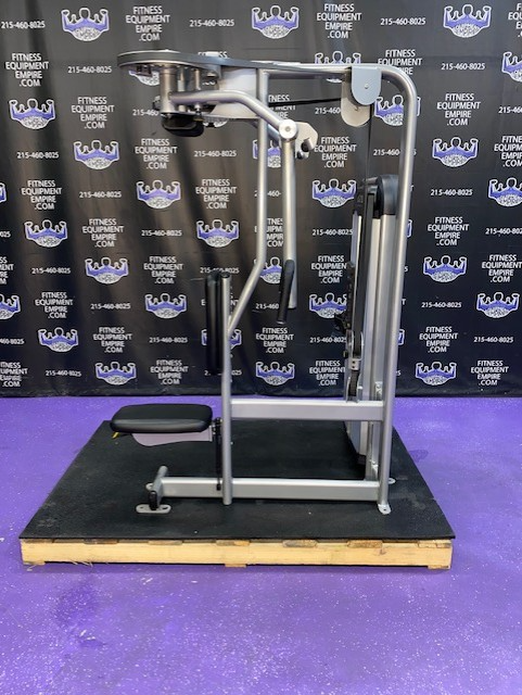 The rear delts in general are neglected, and that’s unfortunate because the rear delts are what completes the round look to the shoulders. In regards to the chest, pressing is not enough. Flys stretch the pecs from another angle, and it’s essential for shape and growth. This machine is a late model and retails for more than $5,400
