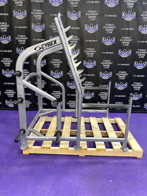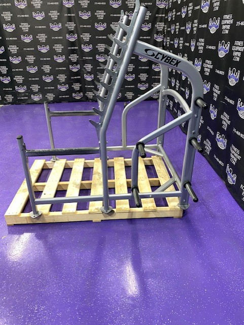 Full commercial grade Cybex squat rack. This rack can be used for a multitude of exercises. Bench press, deadlifts, squats, rows, lunges, shoulder press, and the list goes on. This rack disassembles, making setup and transport simple.