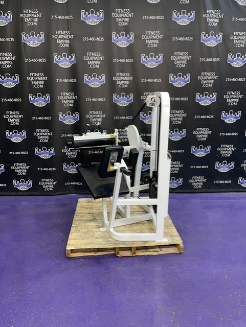 BRAND NEW Empire 8-stack jungle gym/cable crossover with 320 lb. weight stacks! 2.5” x 4.5” rugged, 11-gauge steel and oval tubing for that extra beefy appearance. Unit has high tension cables; multi chin grips that are fabricated with smooth rubber and finished with high-tech aluminum ends and collars. Stations interchange around the central hub for a possible 12-stack, L-shaped jungle gym. Options allow the substitution of 2 hi/low adjustable pulley columns replacing the tricep press down stations found on the Deluxe 8-stack version B (MDM-8SB).