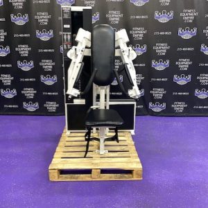 Hammer Strength plate loaded ISO lateral jammer press. This is essentially a standing chest press, (you can also add an adjustable bench and perform seated presses). These are often used by athletes, football players, etc. It’s a very powerful movement that will greatly increase your upper body strength, chest and shoulder development. These units are very common in NFL and NCAA training facilities. Unit is priced to sell.
