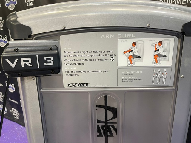 Cybex VR3 platinum bicep, very clean condition. This machine will help get your arms where you want them to be. Unit is belt driven and extremely smooth, well designed and makes cheating the exercise nearly impossible. This is very important for arm growth. All of the tension is placed on the targeted muscle. This unit has a very small footprint.