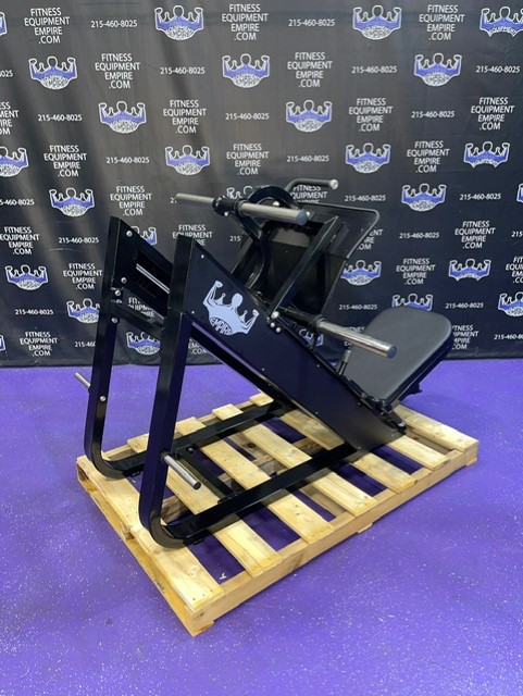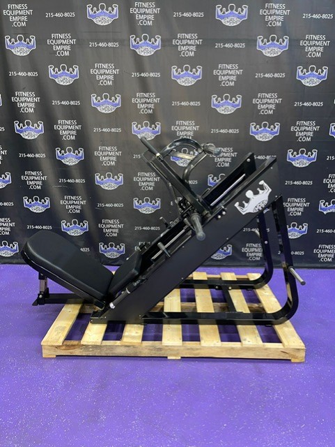 Full commercial grade, BRAND NEW Empire 45 degree platinum linear leg press machine with 4 loading horns. BEAUTIFUL!!! Rated for 1,000 lbs., with a beautiful gloss black powder coat finish.
