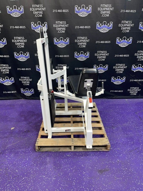 Magnum 45 degree plate loaded linear leg press. This is a classic unit that is built like a tank and will help blast your legs. This machine has a perfect angle and smooth linear bearings. This unit has a large foot plate that allows for various foot positions. This leg press has some cosmetic wear and is in excellent working order. Comparable machines sell new in excess of $5,000.