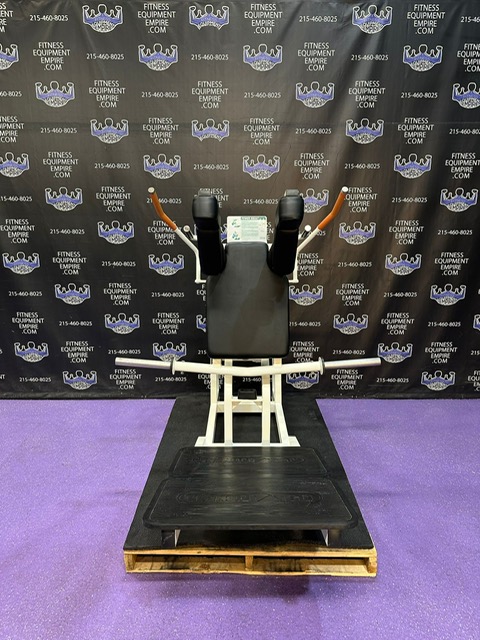 BRAND NEW Empire 8-stack jungle gym/cable crossover with 320 lb. weight stacks! 2.5” x 4.5” rugged, 11-gauge steel and oval tubing for that extra beefy appearance. Unit has high tension cables; multi chin grips that are fabricated with smooth rubber and finished with high-tech aluminum ends and collars. Stations interchange around the central hub for a possible 12-stack, L-shaped jungle gym. Options allow the substitution of 2 hi/low adjustable pulley columns replacing the tricep press down stations found on the Deluxe 8-stack version B (MDM-8SB).