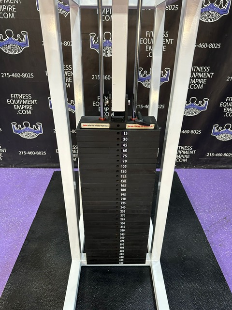 Flex Fitness standing calf w/500 lb. stack. This is a classic unit made by one of the all-time best commercial fitness equipment companies. Beautiful, effective, belt driven, super smooth, comfortable design has always made this specific unit popular and highly sought after. The standing calf exercise is a staple and can be found in just about every single gym across the country. This machine is in refurbished condition, and perfect working order. If you’re a fan of, and or collect Flex, this is your opportunity to own a RARE machine.