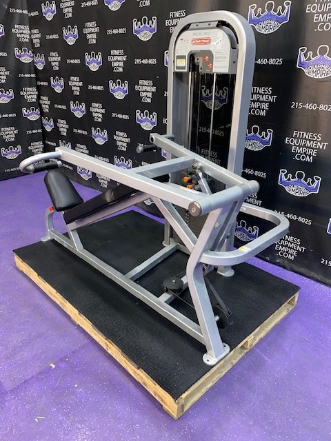 BRAND NEW Empire 8-stack jungle gym/cable crossover with 320 lb. weight stacks! 2.5” x 4.5” rugged, 11-gauge steel and oval tubing for that extra beefy appearance. Unit has high tension cables; multi chin grips that are fabricated with smooth rubber and finished with high-tech aluminum ends and collars. Stations interchange around the central hub for a possible 12-stack, L-shaped jungle gym. Options allow the substitution of 2 hi/low adjustable pulley columns replacing the tricep press down stations found on the Deluxe 8-stack version B (MDM-8SB).