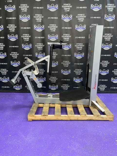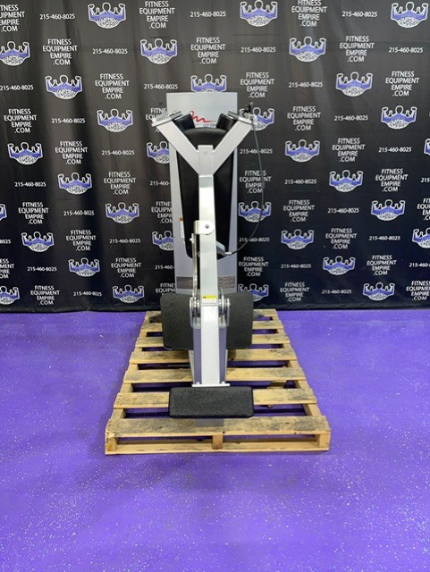 Hammer Strength plate loaded ISO lateral jammer press. This is essentially a standing chest press, (you can also add an adjustable bench and perform seated presses). These are often used by athletes, football players, etc. It’s a very powerful movement that will greatly increase your upper body strength, chest and shoulder development. These units are very common in NFL and NCAA training facilities. Unit is priced to sell.