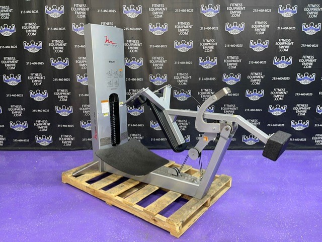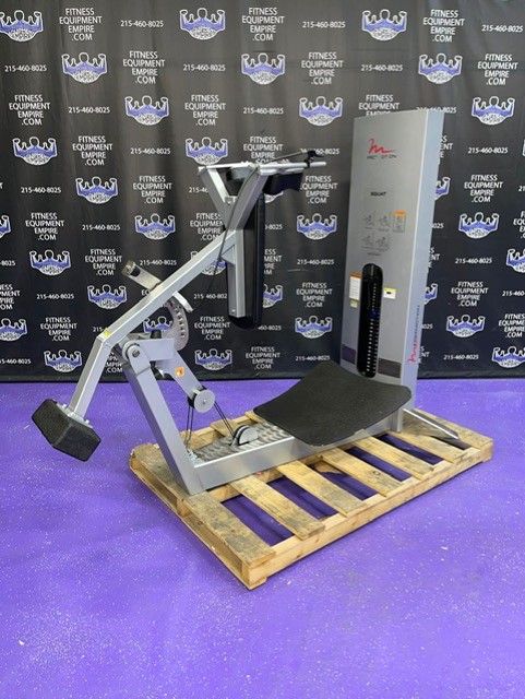 FreeMotion squat machine with 400 lb. stack. This unit in excellent, beautiful condition. This is the machine that can be found in the mecca of bodybuilding – Gold’s Gym, Venice Beach. The likes of Dexter Jackson, Sean Rhoden and TONS of other IFBB Pro bodybuilders can be found training on this machine, often by Charles Glass. The angles of the platform on this machine are crazy! You can also squat facing either direction. This machine does not and will not bottom out, and is GREAT on the joints, which is why Dexter uses it. He’s 46 and his legs are better than ever! This is a PHENOMENAL machine!!