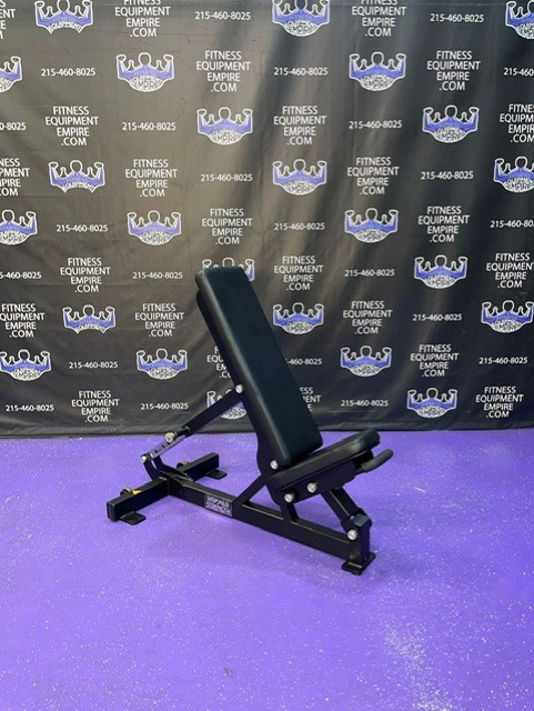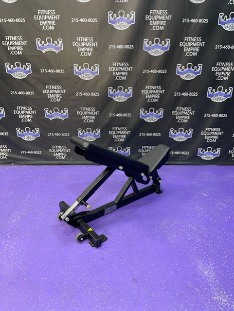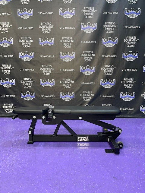 Hammer Strength 0-90 adjustable bench on wheels. This is the current and latest model by Hammer Strength. These are built like tanks and is in excellent condition. These benches retail for nearly 2x our asking price.