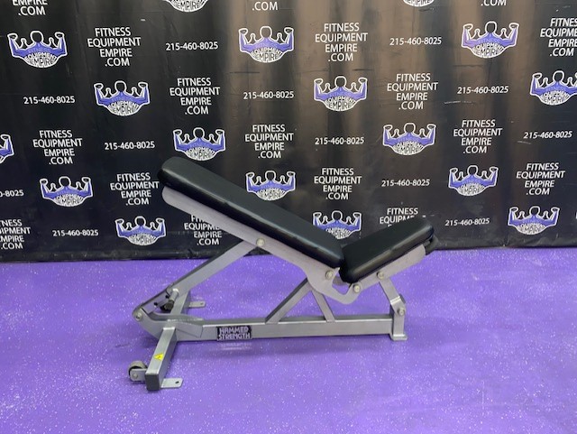 Hammer Strength 0-90 adjustable platinum bench on wheels. This is the current and latest model by Hammer Strength. These are built like tanks and are in excellent condition. These benches retail for more than 2x our asking price.
