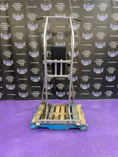 Hammer Strength chin dip leg raise. You can train the entire upper body with this power tower. Dips for the chest and triceps, pull-ups and chin ups for the back and biceps, leg raises for the abs and obliques.