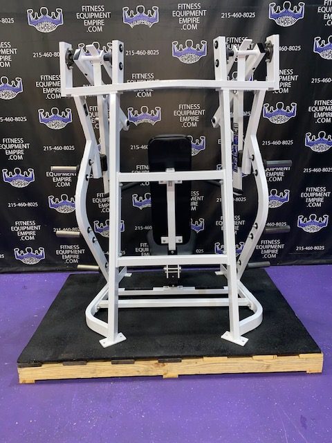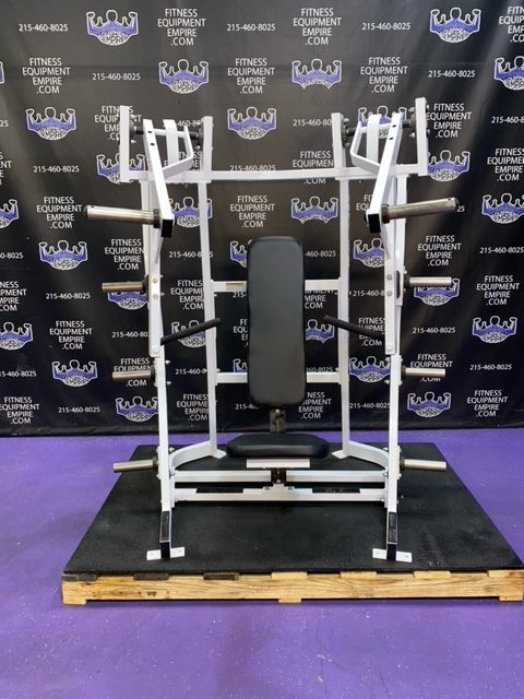 BRAND NEW Empire 8-stack jungle gym/cable crossover with 320 lb. weight stacks! 2.5” x 4.5” rugged, 11-gauge steel and oval tubing for that extra beefy appearance. Unit has high tension cables; multi chin grips that are fabricated with smooth rubber and finished with high-tech aluminum ends and collars. Stations interchange around the central hub for a possible 12-stack, L-shaped jungle gym. Options allow the substitution of 2 hi/low adjustable pulley columns replacing the tricep press down stations found on the Deluxe 8-stack version B (MDM-8SB).
