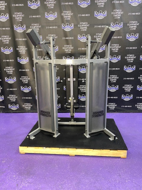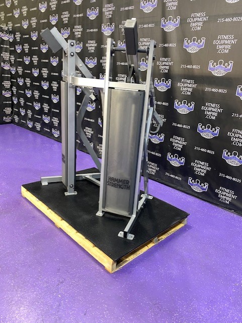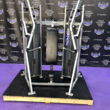 Hammer Strength MTS ISO lateral incline press. Unit is in very clean condition. TWO 150 lb. belt driven (smooth and true to weight) stacks give you more than enough weight to blast those pecs. This machine will humble you really quick. The incline press is a must for the mid and upper pecs. This movement is often neglected, and you’ll never see someone with too much upper chest development. This machine retails for almost $5,000.