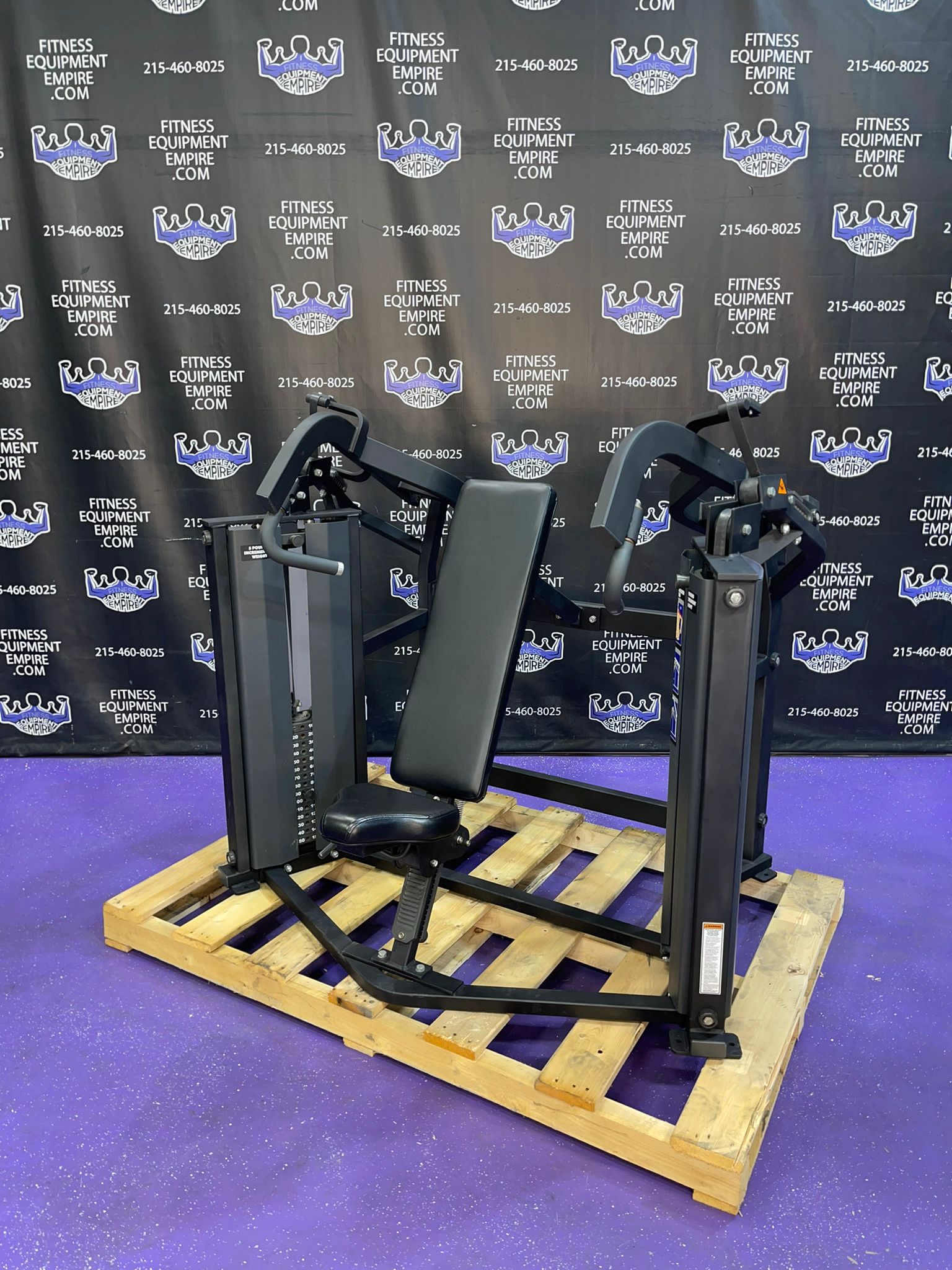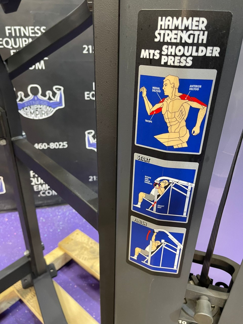 Hammer Strength MTS ISO lateral shoulder press. Swivel multi grip handle, independent (2) 150 lb. weight stacks help promote symmetry and balance. This is the best selectorized shoulder press, in my opinion. Unit is in excellent condition.