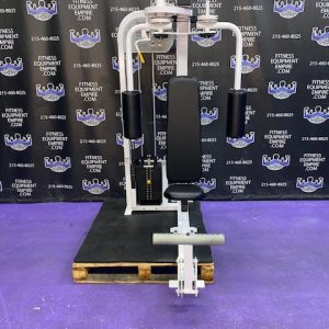 Nautilus Nitro pec fly rear delt combo machine. This unit by design is PERFECT for anyone with shoulder, rotator cuff, pectoral or bicep injuries. This unit puts the emphasis on the chest and nothing else. You don’t even have to think about it like you do with typical pec fly rear delt machines; simply squeeze your pecs. This machine is Kevlar belt driven and is extremely smooth. This unit has a really good feel, totally blasts the pecs, and is a must do for your rear delts. It is in excellent condition and working order. Unit ships exactly as shown.