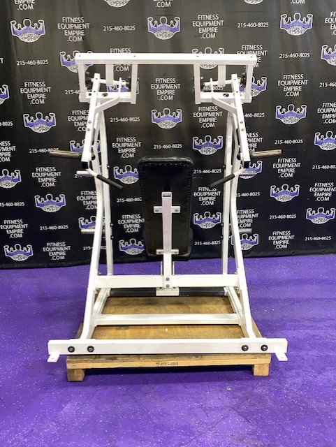 Cybex VR2 dual axis converging incline chest press. The cool thing with this unit is that it’s not a fixed range of motion. You can change the angles, go wide, go close, converge etc. This machine is belt driven and has a 300 lb. stack! This machine is super smooth, built like a tank and will annihilate your pecs. This unit is in beautiful condition.