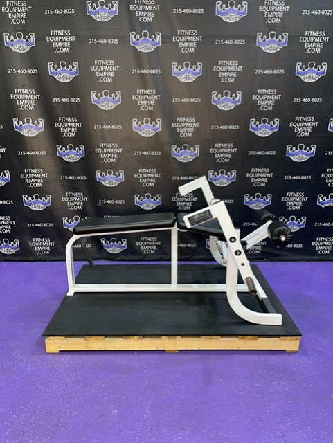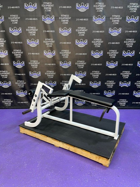 Hammer Strength plate loaded prone lying leg curl. This is a fantastic machine for training the hamstrings and even glutes. The machine provides constant tension and a great pump. Unit has been cleaned, serviced and is ready to go.