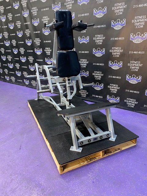 Hammer Strength plate loaded platinum V squat. This unit is in excellent condition. This is one of the best, most popular and sought after super/power squat machines. You can squat facing either direction and really blast the entire lower body. This machine will train the glutes, quads, hamstrings and calves.