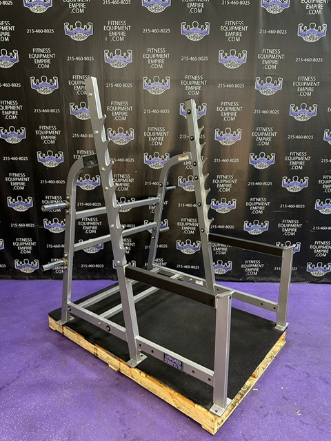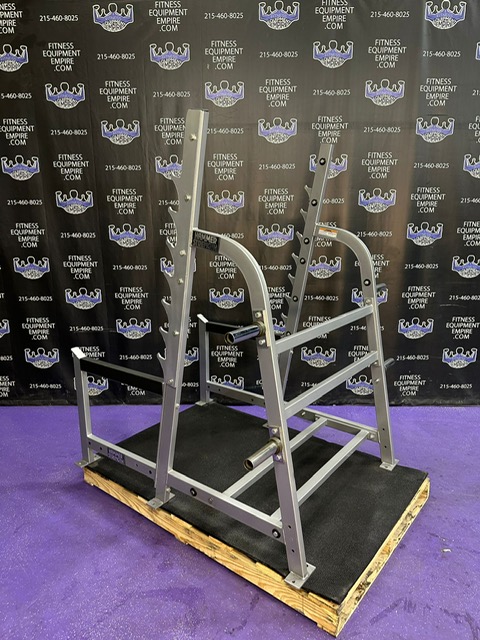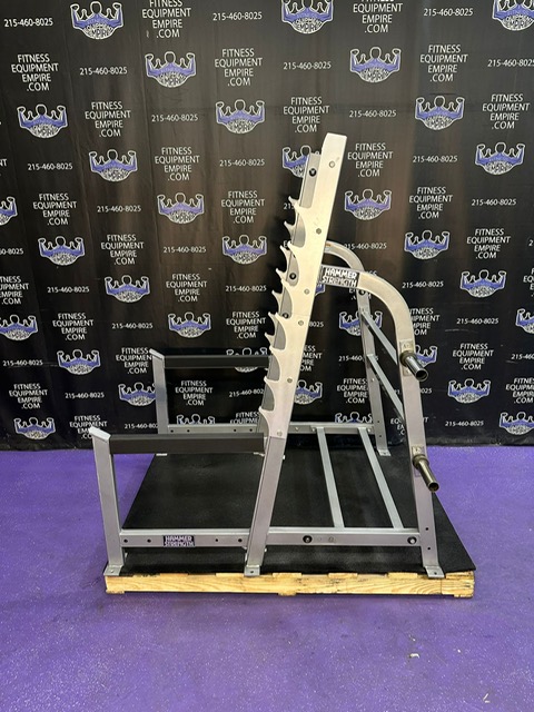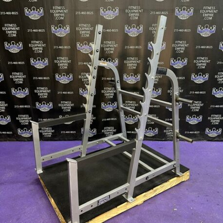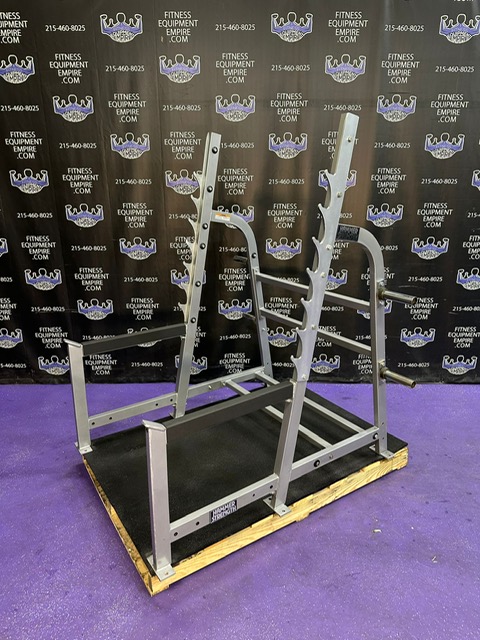 Hammer Strength Squat Rack. This is a full commercial grade rack by one of the industry leaders in commercial fitness equipment companies. This rack is built like a tank and will take a ton of abuse. This rack will fully disassemble, making transport and setup anywhere a breeze.