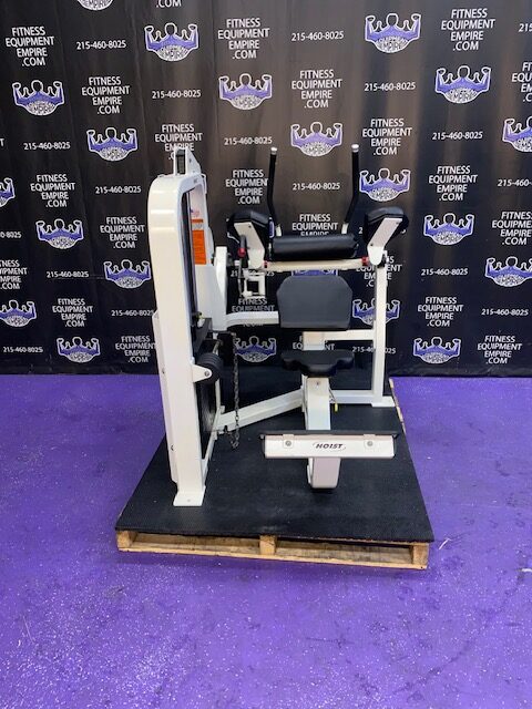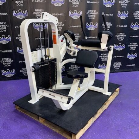 Hoist abdominal crunch. Weight resistance is a must for toning and building the abdominal muscles; simple sit-ups and leg raises don’t cut it. This machine has a huge weight stack. Unit is also belt driven, very smooth and natural feeling. Unit is being sold As-Is. This machine is in excellent working condition.