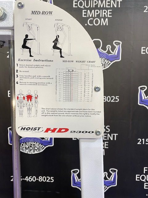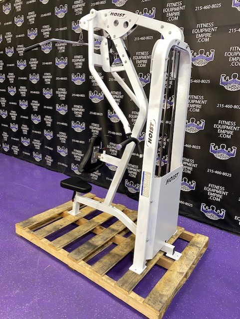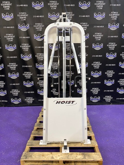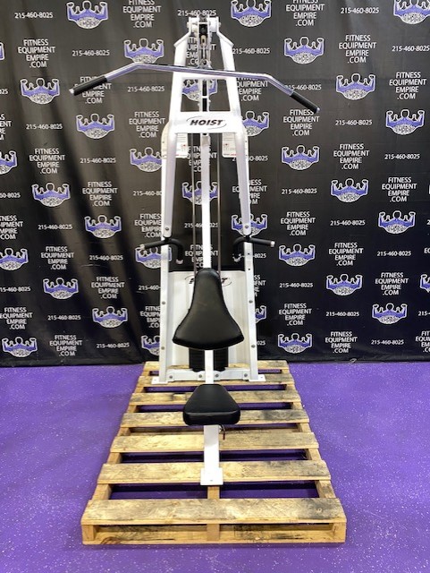 Hoist full commercial grade lat pulldown and mid row combo. This unit is in stellar condition and perfect working order. This machine is a major space saver, is a two in one machine, a total back (and tricep) unit.