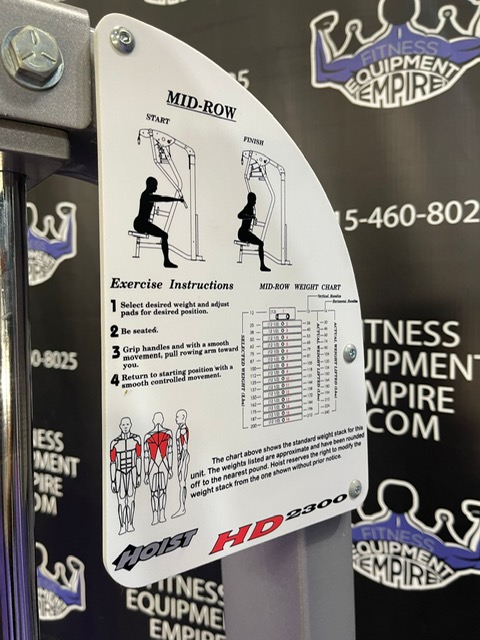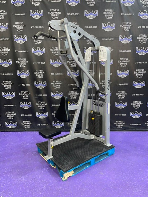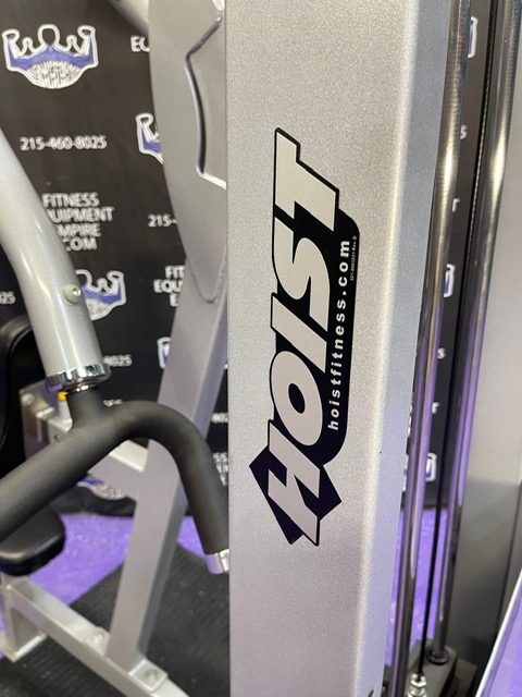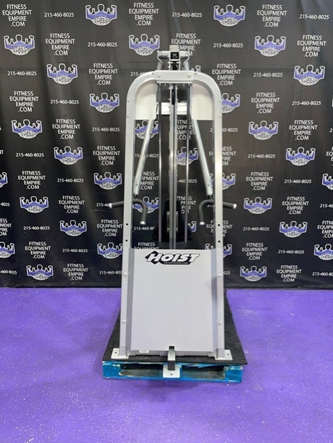 Hoist full commercial grade lat pulldown and mid row combo. This unit is in stellar condition and perfect working order. This machine is a major space saver, is a two in one machine, a total back (and tricep) unit.