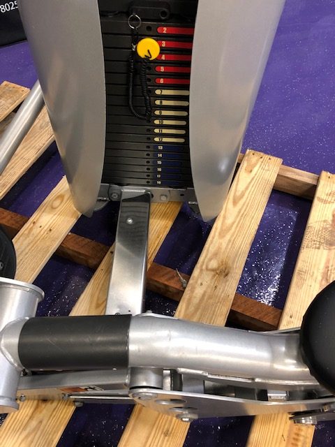 The pull phase rocks the user into a 20 – 30º rearward lean to avoid unsafe low back hyperextension, pulling the arms handles down into a low row position lower back.